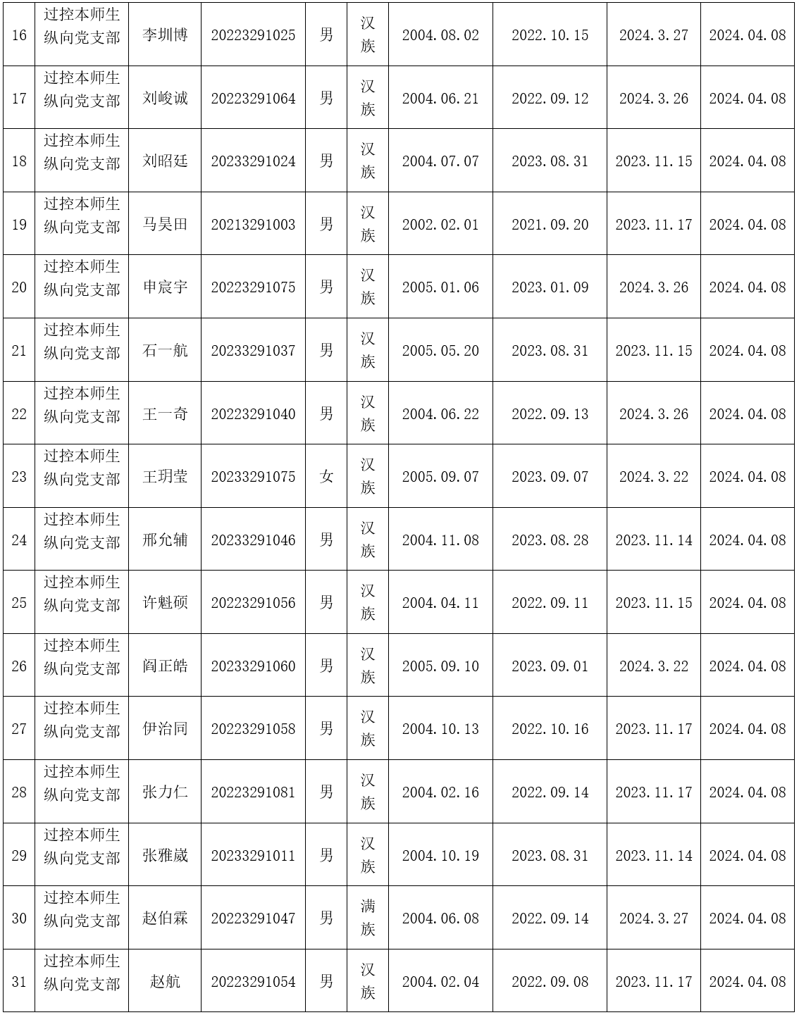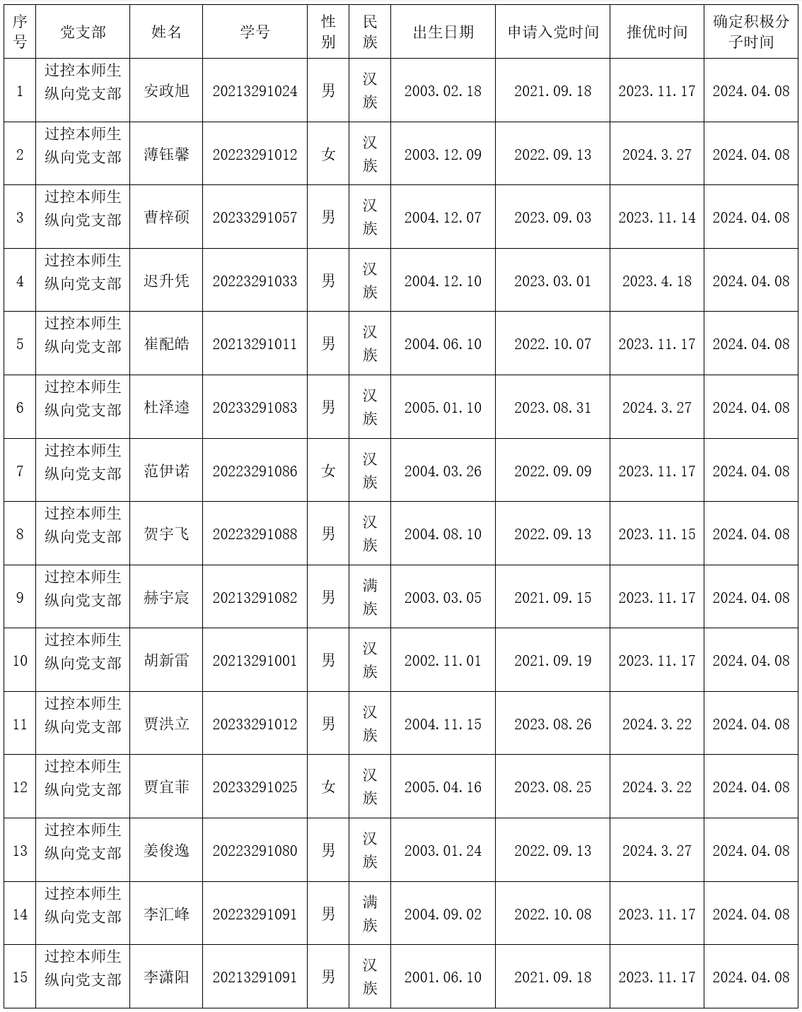 在听取培养联系人、党员和群众意见的基础上,经支部大会研究决定,拟确定安政旭等33名同志为入党积极分子,具体情况公示如下。