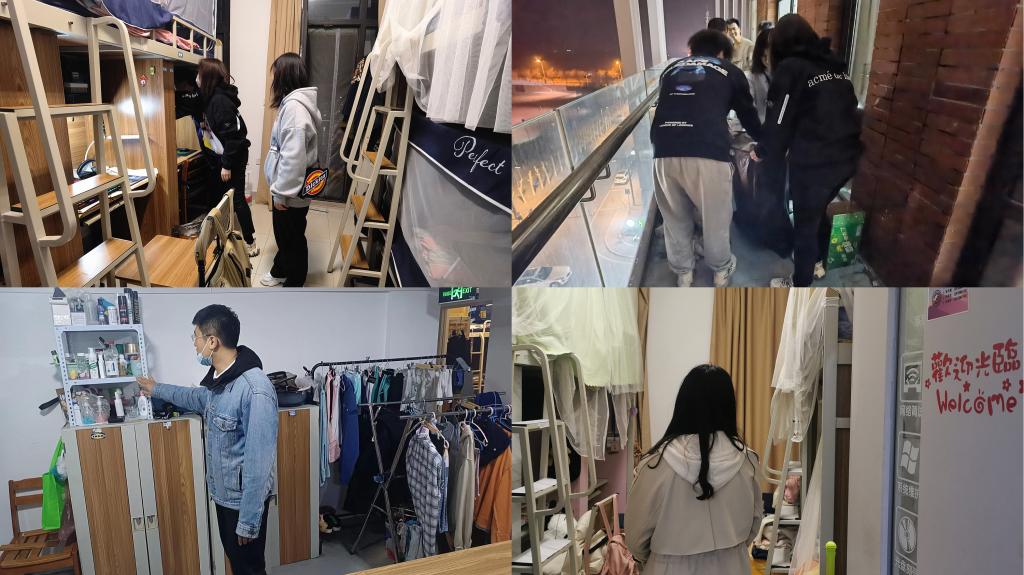 学院直属党支部副书记兼副院长赵玲玲带领学生工作办公室的全体辅导员老师通过线上线下相结合、组建学生党员和学生干部先锋队等形式对宿舍卫生进行逐一检查和问题整改。居家办公的辅导员通过分配学生党员责任人和线上“云检查”等方式进行检查,线下辅导员老师在检查自己年级全部寝室后,再次协助居家办公的辅导员老师进行线下走寝,通过连续两天人均超过8小时、2万步的“暴走”,确保学院全体本科生所在寝室、单元二次检查全覆盖。