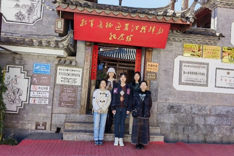 实践的第一站,实践团来到红军长征过丽江指挥部纪念馆。指导教师赵玲玲、赵天蔚老师在实践中为成员们进行思想教育,培养学生的爱国主义精神和高尚情操,并一同缅怀革命先烈的丰功伟绩。