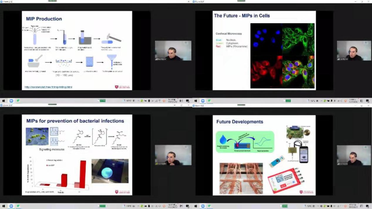第一场是由莱斯特大学化学学院Kal Karim副教授为大家带来的《World-leading Research in the Design of Smart Polymers》。Dr. Kal Karim通过举例向同学们展示MIPS的生产过程、MIPS的一些性质以及它在防止细菌感染上的应用,并引入了纳米概念来向大家介绍MIP中的纳米科技。