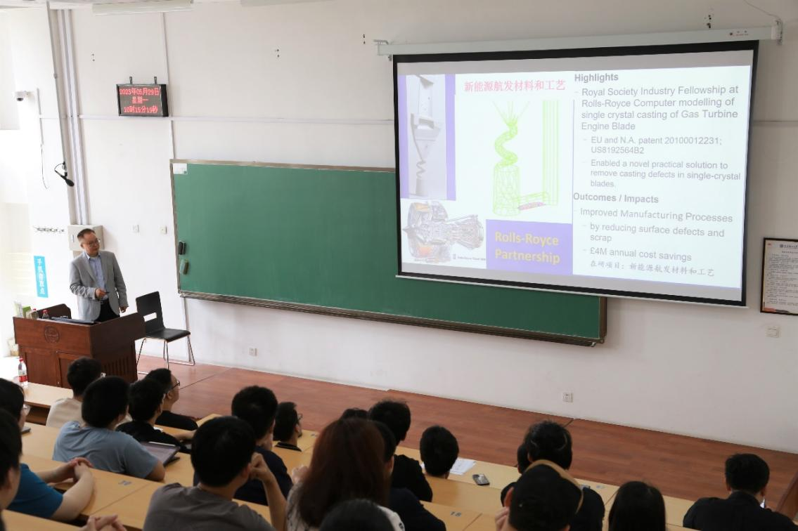 董洪标院士以“Engineering and Technology Sustainability Trends 2023-2030”为主题,带领大家一起探索未来工程师发展方向。报告以莱斯特大学的新材料研究与创新为引子,通过融合物理模型和机器学习的数字制造为切入点,对新能源航发材料和工艺的研发案例进行了详细解读,同时向同学们阐述了未来工程师面临的巨大挑战。