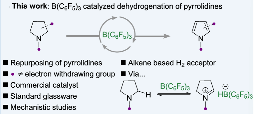 近日,莱斯特国际学院授课教师Alexander P. Pulis与李阳科研合作结出硕果,在TOP期刊ACS Catalysis(影响因子12.9)合作发表了题为“B(C6F5)3催化吡咯烷脱氢制吡咯(B(C6F5)3 Catalyzed Dehydrogenation of Pyrrolidines to Form Pyrroles)”的研究论文。