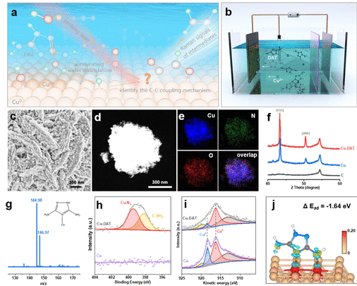 水活化在CO2还原中起着至关重要的作用,但通过控制水活化来提高电催化性能是一个重大挑战。本论文使用富含N-H的分子对Cu表面工程化,促进水分子的解离和不对称C-C偶联,实现了高选择性电化学CO2还原制备乙烯和乙醇。本项研究为促进CO2还原反应机理的理解,促进加快水分子解离提高电催化性能,提供了一种有效和通用的策略。