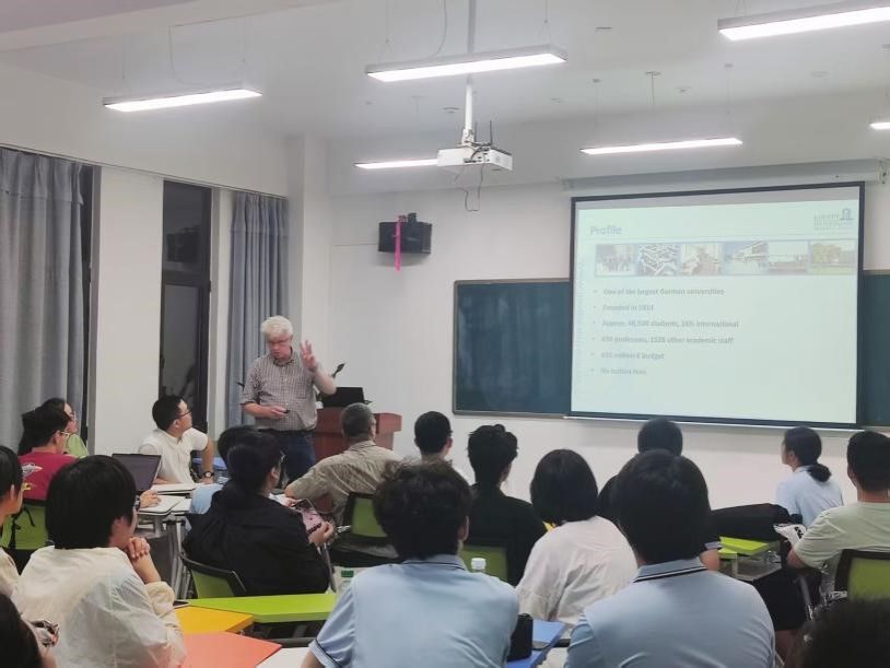 宣讲会上,Andreas Terfort教授详细介绍了法兰克福大学的基本情况,重点介绍了其在化学与药学领域的国际声誉、前沿科研成果及暑期课程特色。他强调,该项目以"理论与实践深度融合"为核心,采取“学术讲座+实验操作”相结合的教学模式,强调科研思维与实验能力的全面提升。Andreas Terfort教授也跟同学们一起回顾了2025年暑期课程的精彩瞬间,从第一周的学术讲座到第二周的分组实验,从与授课教授的互动交流到实验助教的细心指导······他也嘱咐同学们专注提升学术能力,不断开拓展国际视野。