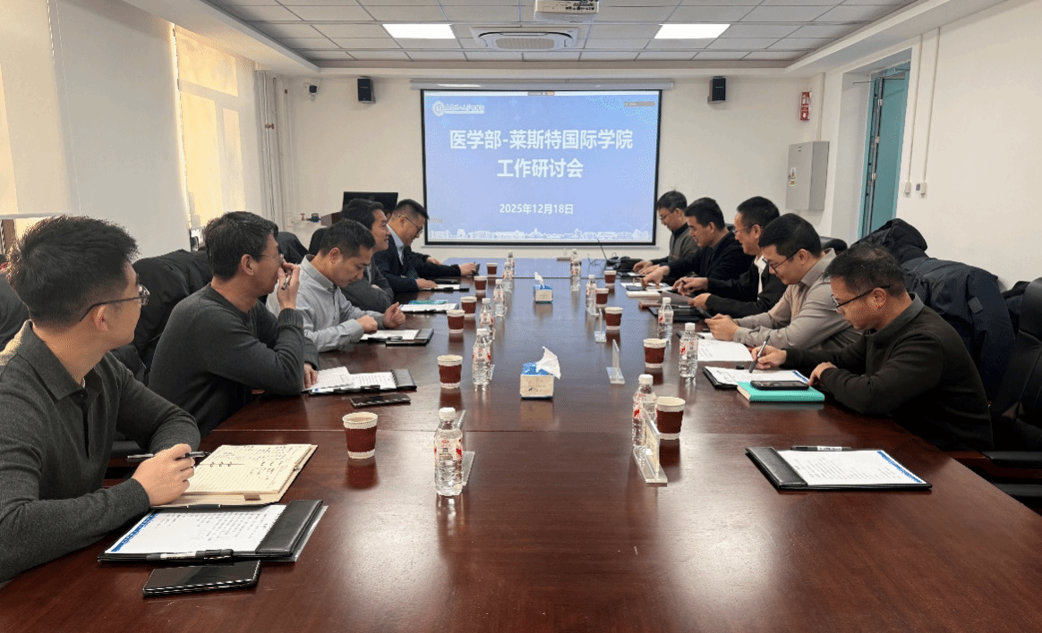 为协同推进新获批的药学专业建设,2025年12月18日上午,莱斯特国际学院党委书记孙刘劼、副院长(主持工作)刘进轩率队到学校医学部进行调研座谈。会议在主校区厚坤楼C204举行,医学部党委书记覃开蓉及班子成员予以热情接待,双方就未来深度合作进行了广泛而深入的交流。