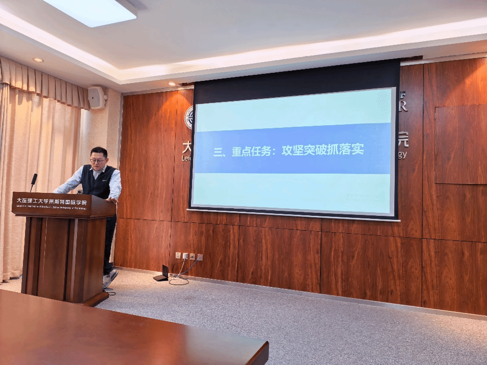副院长(主持工作)刘进轩从正视不足、年度目标、重点任务三个方面对学院2026年的工作进行了部署。刘进轩以问题为导向,总结学院在人才培养、科研、师资队伍建设方面存在的不足,并结合学校和校区的规划,对学院的重要指标进行剖析,从国际交流合作、人才培养、科学研究、师资队伍建设、条件保障方面明确本年度学院的重点攻坚任务。