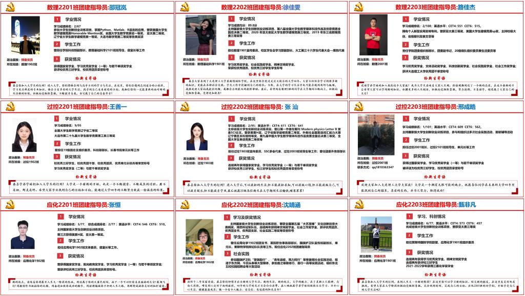 最后,徐连杰宣布聘任邵冠岚等9名优秀学生党员为2022级各团支部的团建指导员并介绍新聘任团建指导员的个人事迹。团建指导员作为实现“党建带团建、党建促团建”的中坚力量,必将发挥他们的榜样示范作用,激励和引导新生适应大学生活、坚定理想信念、奋发进取。