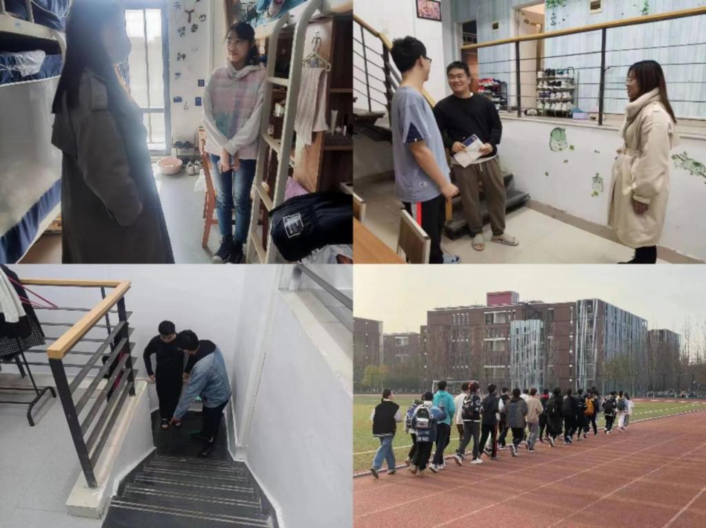 在新冠病毒感染实施“乙类乙管”的首个开学季,辅导员深入学生寝室,积极走访宿舍了解学生返校后思想动态和需求,排查大功率电器使用、危险物品存放等问题,消除可能存在的安全隐患,提醒同学们注意防火、防盗、防电信网络诈骗等,增强防骗、识骗能力。积极引导学生增强体魄、养成良好的学习生活习惯,学院自2019年起开展晨读晨练活动,本学期新增设晨读、晨练打卡小组,日日不息,久久为功,营造出良好的学习和锻炼氛围。