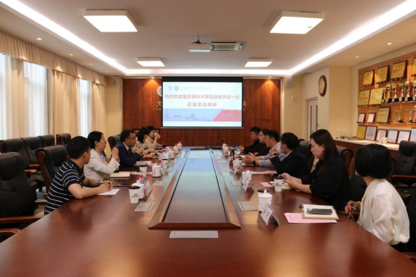 占敬敬对段昌柱一行的来访表示欢迎,他表示,两所学院都与英国莱斯特大学开展合作办学,有着很多的共同点,希望通过本次调研进一步加深两院的沟通联系。占敬敬介绍了学院近年来的发展情况及存在的问题,希望莱斯特国际学院的一些经验做法能够为重庆医科大学国际医学院提供有益的帮助。