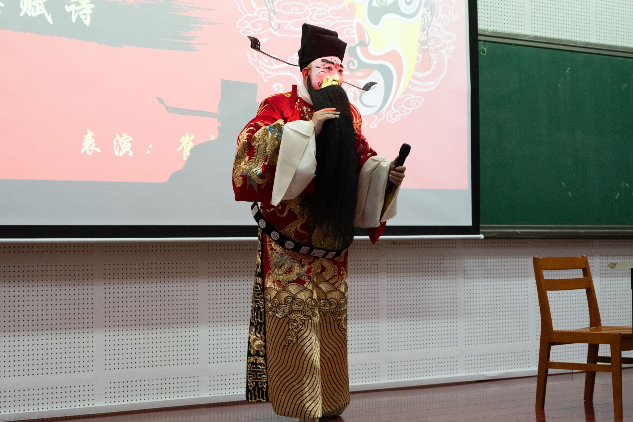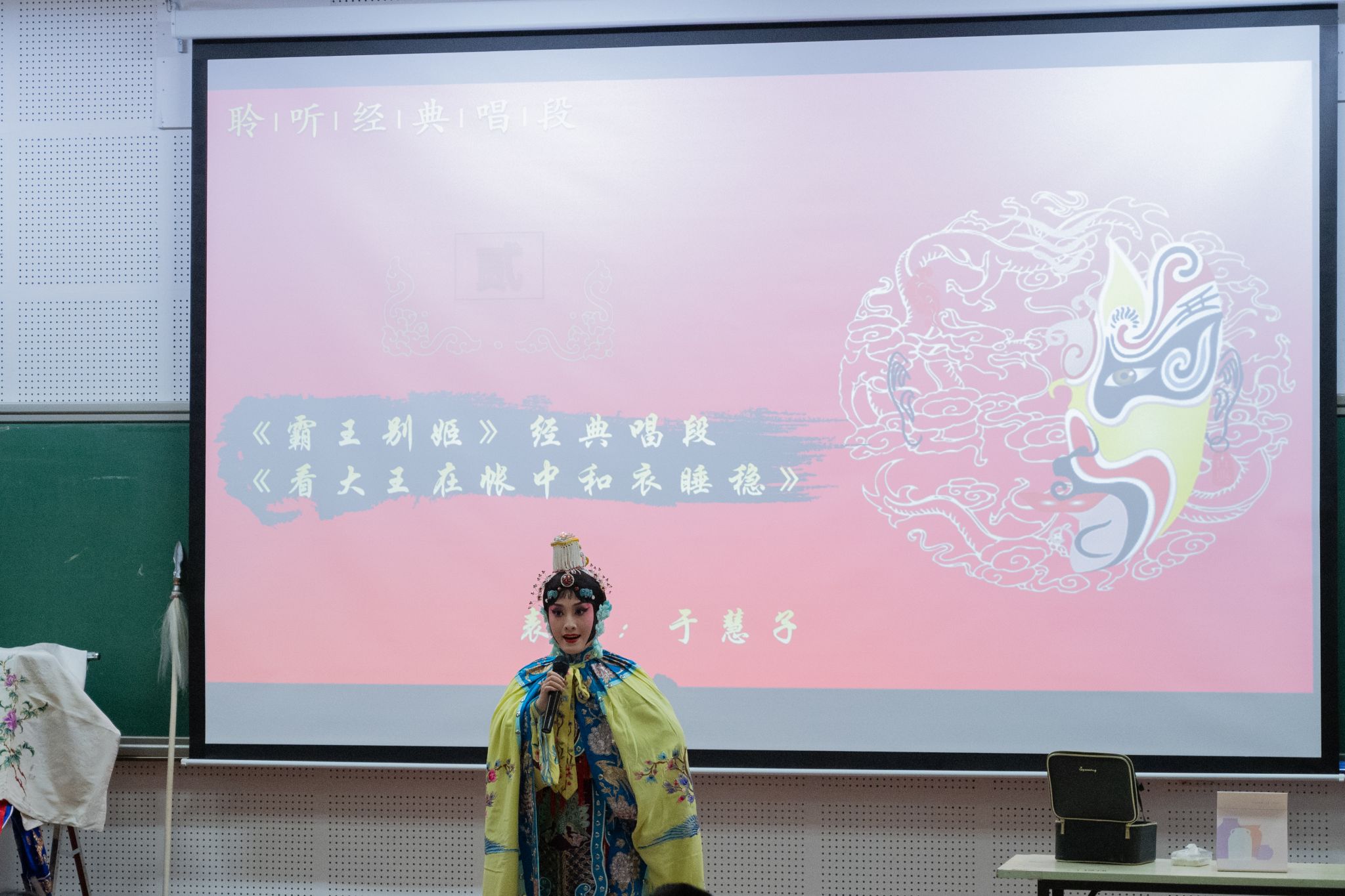 这次活动是学院弘扬中华传统文化系列活动《历史的回音》的第四期。以“传承戏曲文化,品味魅力中华”为主题,旨在让学生近距离感受中国优秀传统文化的魅力,并有效促进传统文化的传承与创新。在课堂上,大连京剧院的三位演员身着华丽的戏服,以精湛的演技和动人的唱腔,演绎了《横槊赋诗》和《霸王别姬》的精彩唱段。每一个动作、每一个眼神都让现场师生仿佛穿越到了古代的宫廷之中。