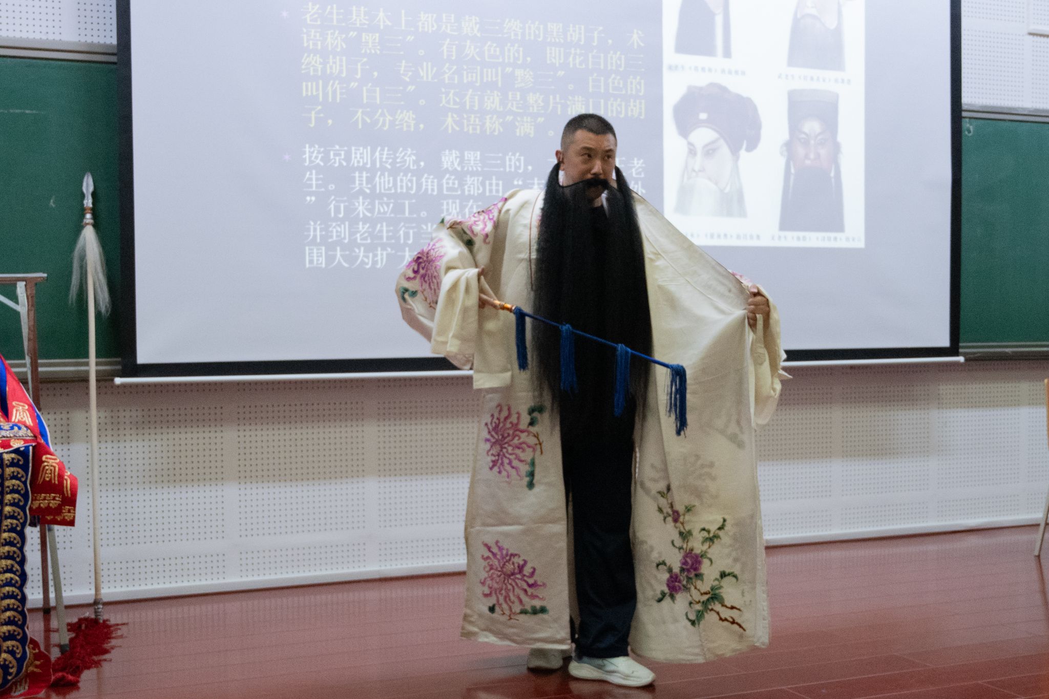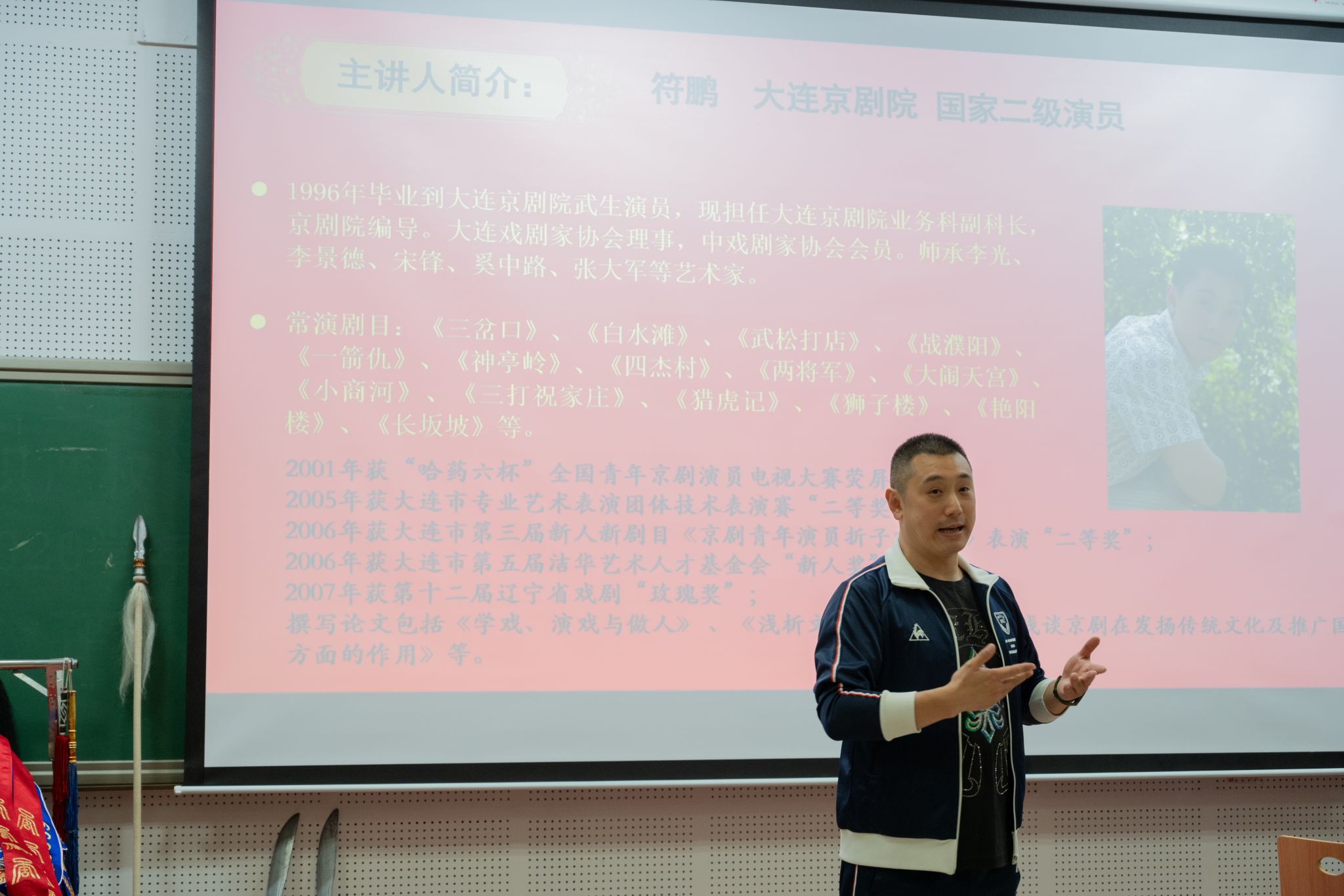 5月14日晚,莱斯特国际学院举办了一场别具特色的国粹京剧进课堂活动,来自大连市京剧院的青年演员符鹏、崔志明、于慧子,以及戎妆老师王丽娜和服装老师马文荣应邀前来盘锦校区,为师生呈现了精彩的京剧讲座与表演。