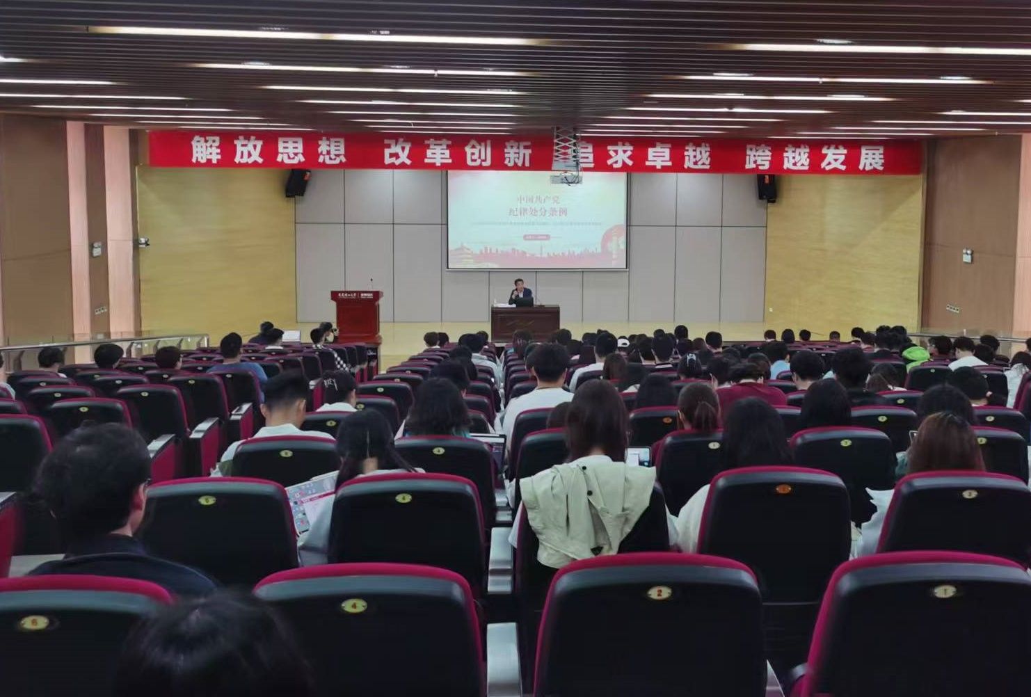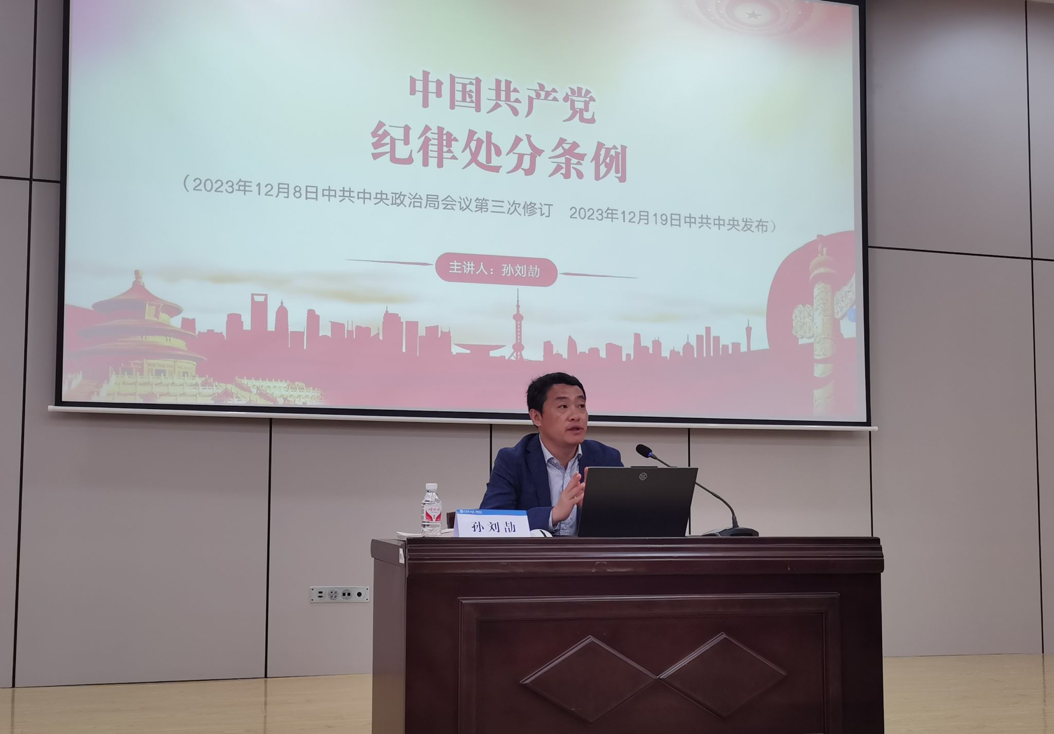 为深入学习贯彻习近平总书记关于党纪学习教育的重要讲话和重要指示精神,强化师生党员的纪律意识和规矩意识,提升党性修养,5月22日,莱斯特国际学院党委书记孙刘劼以“新修订的《中国共产党纪律处分条例》学习解读”为主题,面向学院全体师生党员、发展对象、积极分子讲授了党纪学习教育专题党课。
