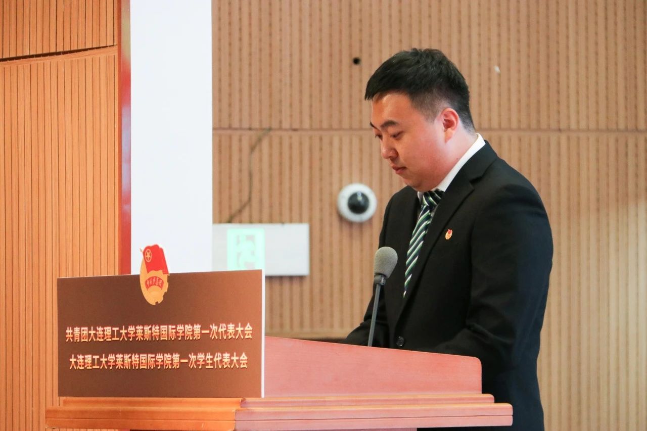 会上,莱斯特国际学院团委学生会指导教师徐思远代表共青团大连理工大学莱斯特国际学院委员会和莱斯特国际学院学生会以《以学铸魂,砥砺前行,团结带领全院青年在推进国际化发展中贡献青春力量》为题,从砥砺前行的青春足印和筑梦前行的青春篇章两个部分对学院团学工作七年来的努力进行了总结并展望了未来的奋斗方向。