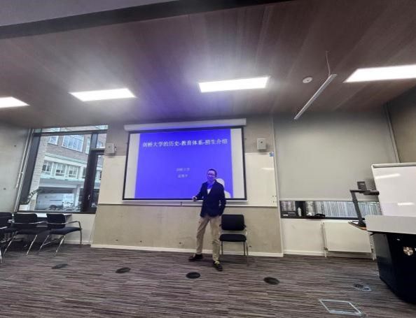 1月18号,刘进轩教授一行前往剑桥大学工程系进行了人才招聘宣讲,并与丘吉尔学院梁东方教授进行了科研教学方面的交流。剑桥大学校友、现莱斯特大学工程系教师田博博士介绍了剑桥大学的历史、教育体系和招生政策。吕振伟和孙珊珊在莱斯特大学参与了课程实验观摩。