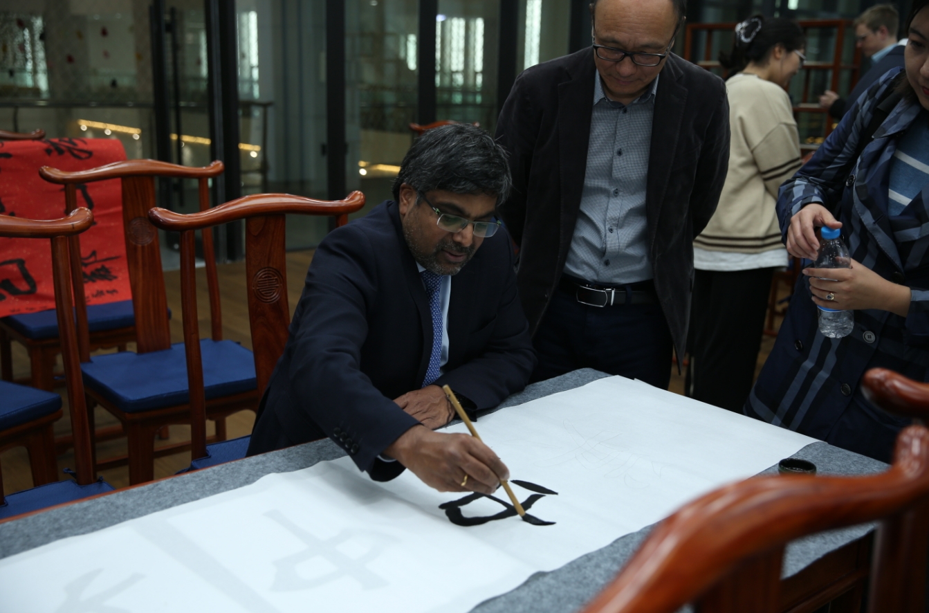 上午,尼山·卡纳戈瑞迦校长一行先后到莱斯特国际学院、图书馆和分析测试中心等地参观,深入了解校区及莱斯特国际学院办学情况。在莱斯特国际学院参观期间,尼山·卡纳戈瑞迦校长亲切看望了英方派遣教师,了解他们在学院生活、工作中的困难,并对他们辛勤的付出表示感谢。