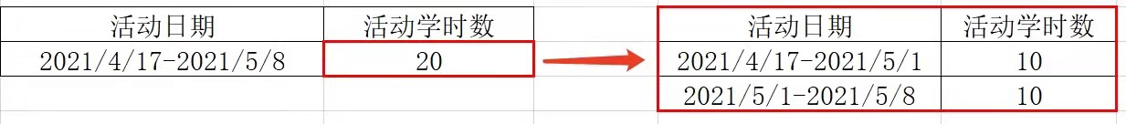 ④若申报学时超20个以上,需将时间段分栏填写(在一张活动汇总表中即可)