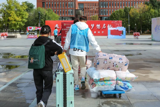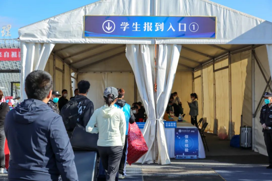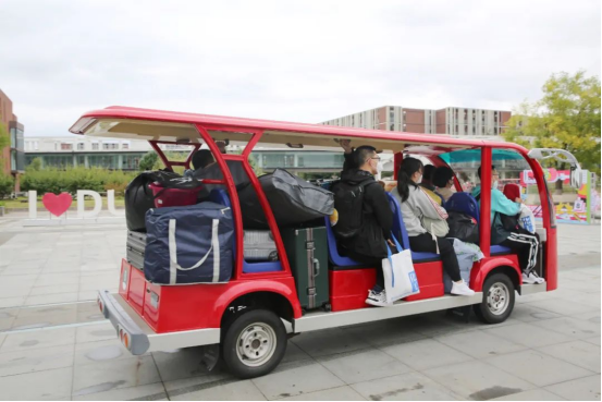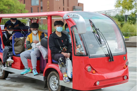 Due to the pandemic circumstance, parents have to stop at the campus gate, Panjin campus provided students with some shuttle buses to carry their luggage. The volunteer groups were available to help and gave the earnest welcome to them.