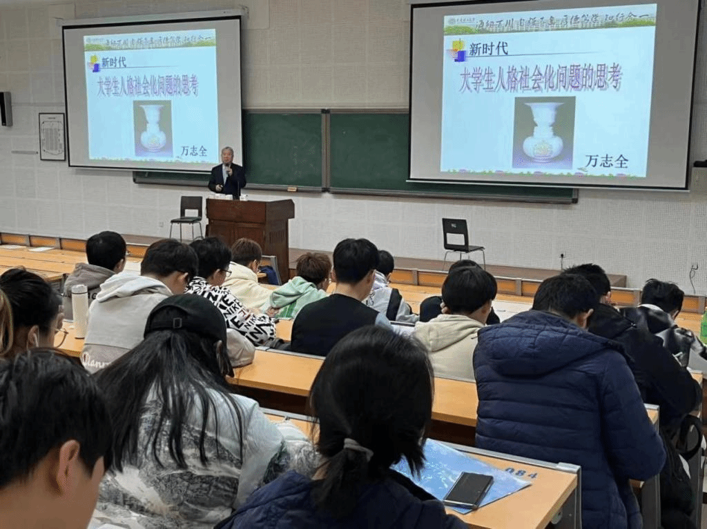 Prof. Wan Zhiquan gave a wonderful lecture from three aspects. He firstly explained the basic concept and scientific meaning of personality socialization to the students; then he shared his philosophical thoughts on the issue of personality socialization of undergraduates with some hot examples in today's society; finally, he explained how students in the new era should build a healthy personality in the new era. Professor Wan said that a correct outlook on life and values should also be cultivated during the university years.