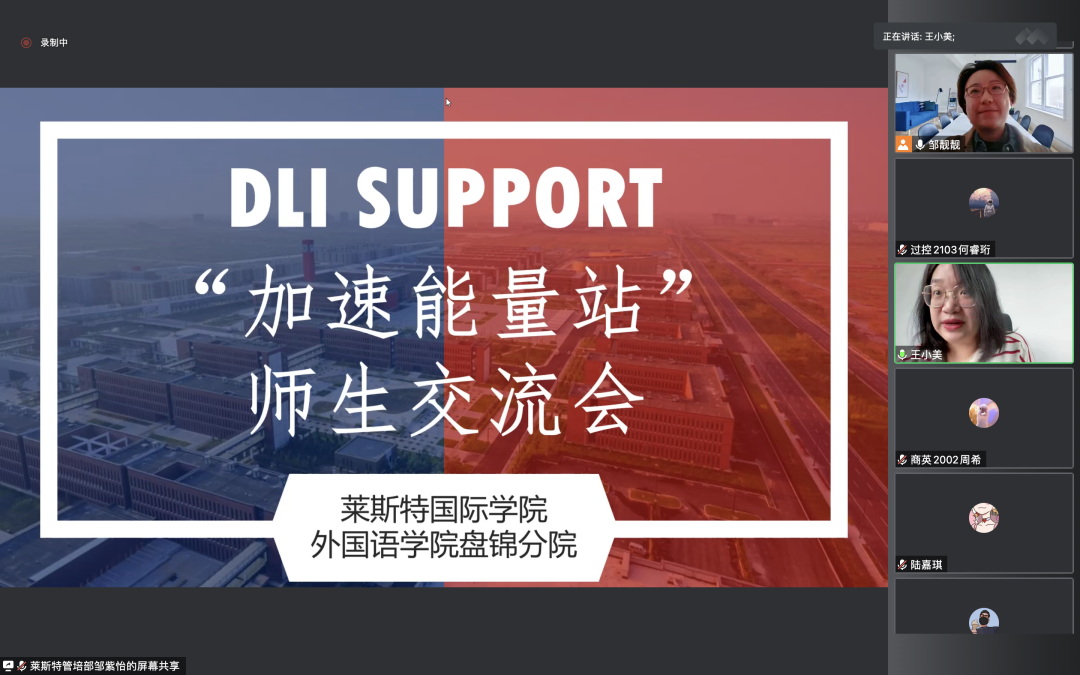 Recently, DLI combined with the School of Foreign Languages, Panjin Campus held the second season of career guiding and sharing session to help campus students to clear their career goals and plan the path with the positive value of employment. This session was held online via a Tencent meeting and hosted by Ms Zou Liangliang, the Director of the Students Affairs Office in the School of Foreign Languages, Panjin Campus.